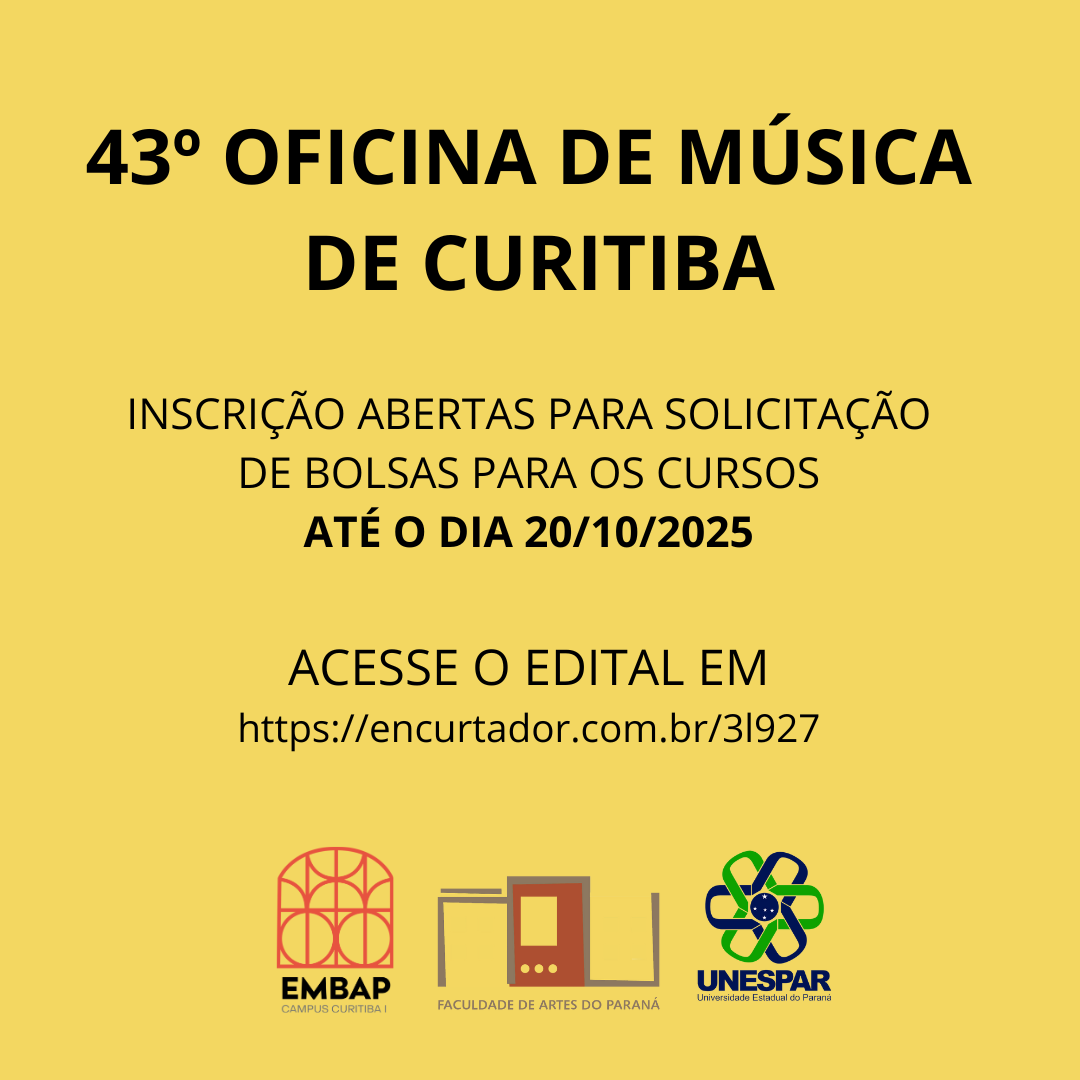43º Oficina de Música de Curitiba - Edital para inscrição de bolsistas - inscrições abertas até o dia 20 de outubro