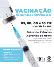 A Universidade Federal do Paraná (UFPR) está oferecendo uma oportunidade de vacinação para toda a comunidade FAP/Unespar. Esta é uma excelente chance para manter sua carteira vacinal atualizada e reforçar os cuidados com a saúde.