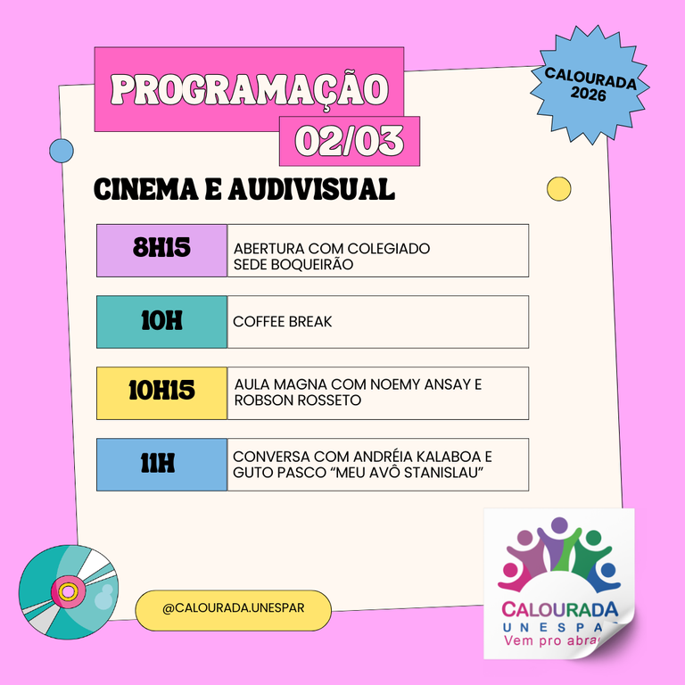 Calourada - Confira a programação do início do ano letivo de 2026 no dia 2 de março