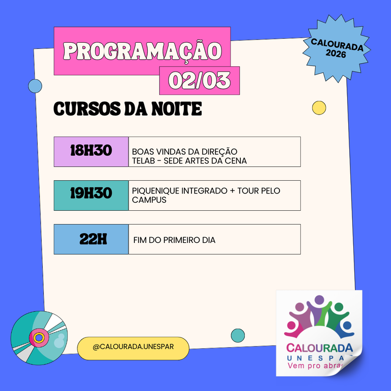 Calourada - Confira a programação do início do ano letivo de 2026 no dia 2 de março