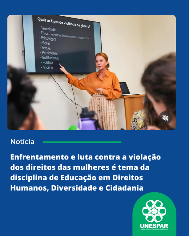 Enfrentamento e luta contra a violação dos direitos das mulheres é tema da disciplina de Educação em Direitos Humanos, Diversidade e Cidadania