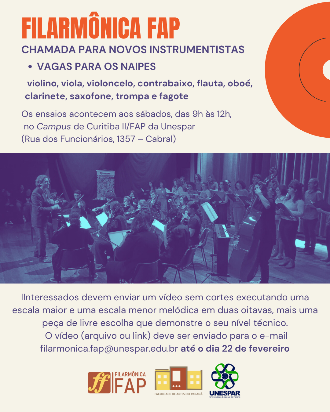 Filarmônica FAP está com inscrições abertas para instrumentistas até o dia 22 de fevereiro