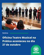 No dia 27 de outubro, o curso de Bacharelado em Musicoterapia promoveu a oficina Teatro Musical da Prática, ofertada pela Companhia Nanna Núcleo de Criação e ministrada pelas professoras Nanna Mercury, Rosane Jorge e pelo elenco da Companhia.