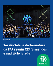 Nesta terça-feira (7), aconteceu a Sessão Solene de Formatura do Campus de Curitiba II/FAP da Unespar, no Auditório Mario Schoemberger, no Campus de Curitiba I/Embap, e reuniu 123 formandos dos nove cursos de graduação da FAP.