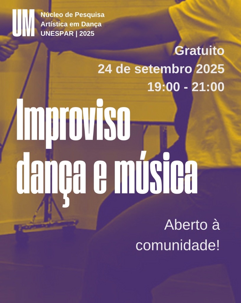 UM - Núcleo de Pesquisa Artística em Dança convida para o Improviso Dança e Música que acontecerá no dia 24 de setembro